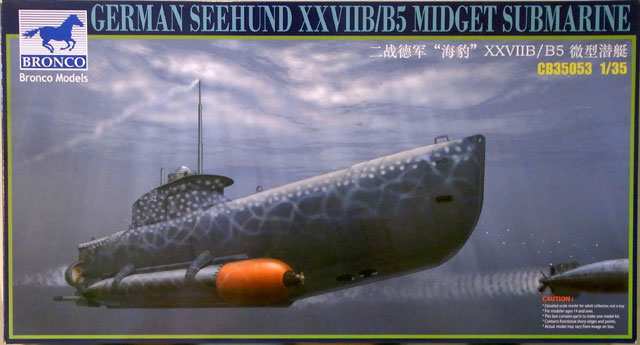 Bausatz: Bronco Models: Unterseeboot Typ XXVII B5 "Seehund" (1/35) Modell: German 'Seehund' XXVII B/B5 Midget Submarine Hersteller: Bronco Models, Maßstab: 1/35, Material: Polystyrol + Ätzteile aus Messing Art.Nr.: CB-35053